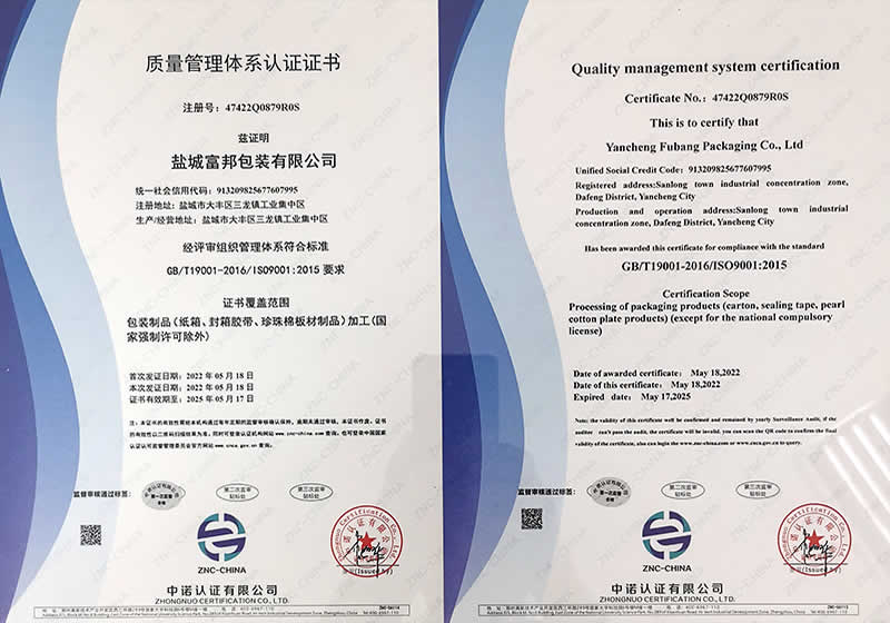 江鹽城富邦包裝有限公司創辦于2011年,地處環境優美的鹽城大豐區三龍鎮工業集中區,緊臨331省道和226省道,交通十分便利。是集研發、生產、經營為一體的中型私營企業,主要生產各種規格內、外銷中高檔瓦楞紙箱、彩色印刷、封箱膠帶、紙托盤、珍珠棉、EPS(泡沫)成型、免模、大板裁片的專業工廠,年產瓦楞紙箱達400萬平方米、封箱膠帶260萬平方米、EPS泡沫10萬立方米以上。工廠占地8000平方米,生產廠房近3000平方米,擁有進口1020秋山四色膠印機,生產工藝先進,檢測手段齊全,品質服務保證,本公司已通過ISO9001:2015國際質量體系認證,并嚴格持續遵照體系認證及商檢部門要求組織生產和經驗管理。。。。。。